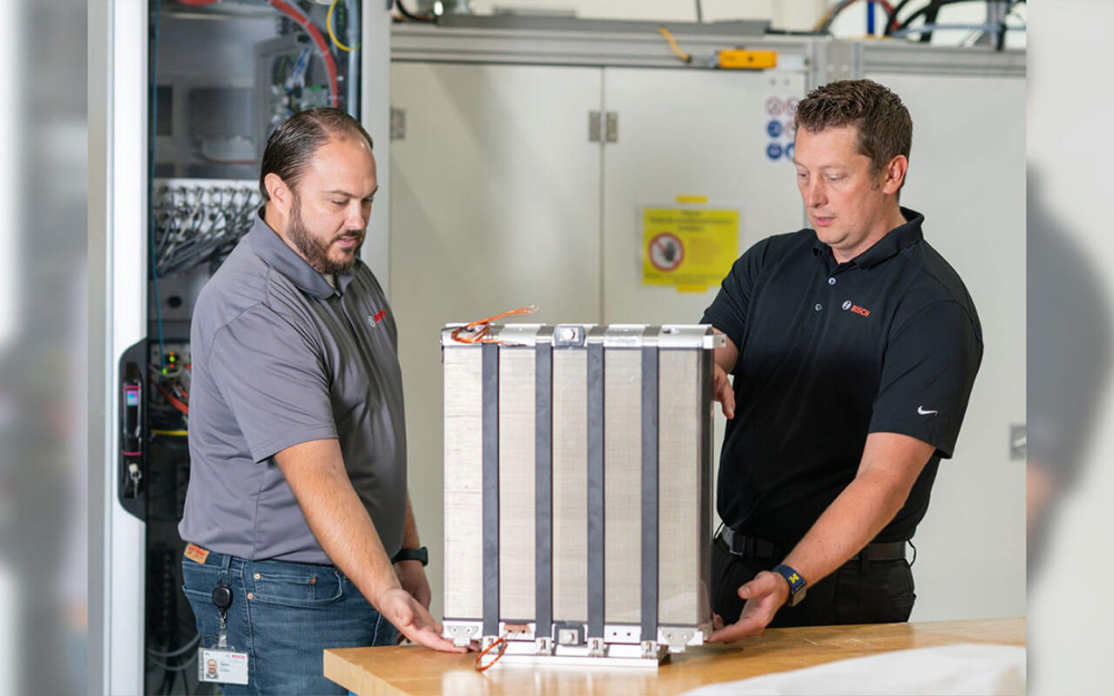 Három évvel ezelőtt pedig két furgont szereltünk fel üzemanyagcellás hajtáslánccal, hogy teszteljük azok működését. A két prototípus építése során Bosch cellaköteg, anód ellátó modul, hidrogéngáz befecskendező és recirkulációs ventilátor, valamint elektronikus vezérlőegység, elektromos légkompresszor és a hidrogéntároló rendszer került a járművekbe, számos kapcsolódó érzékelővel együtt. A projekt során tesztelt furgonok teljes terhelés mellett is képesek voltak 540 kilométert megtenni, tankolásuk pedig mindössze hat percig tartott.