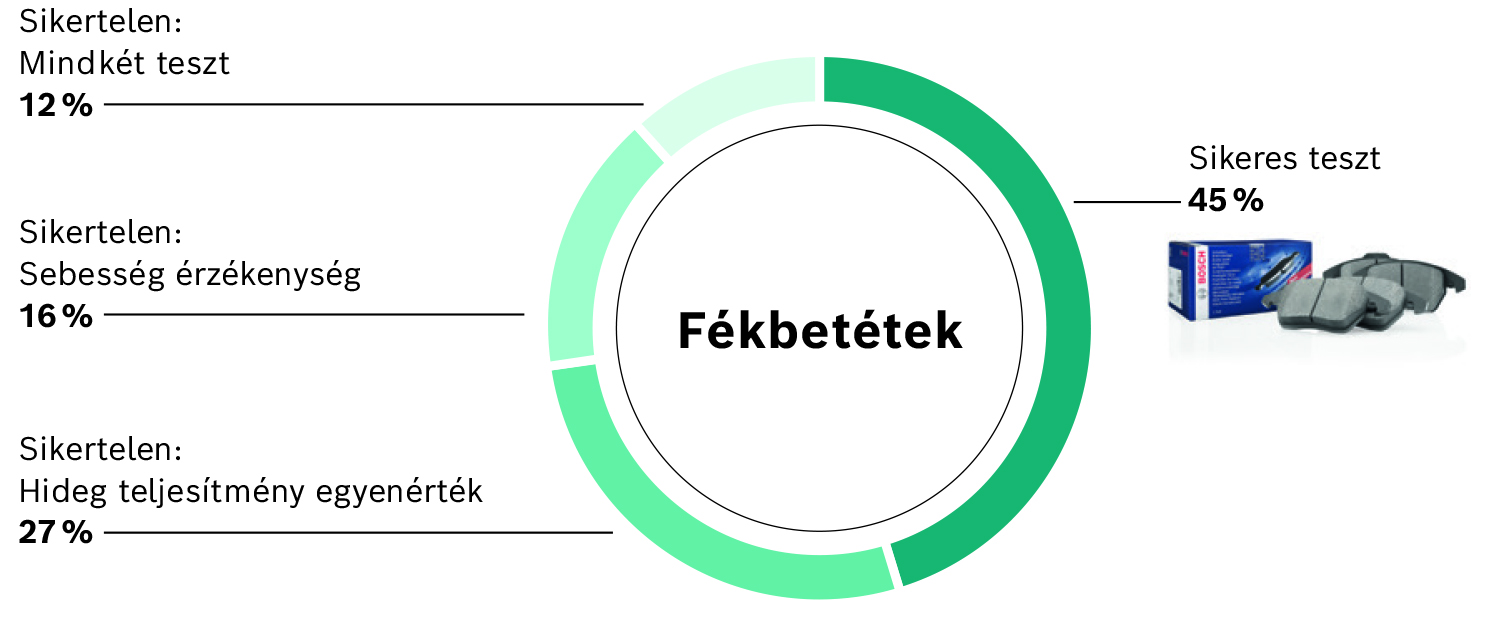 A Bosch fékbetétkészleteket is tesztelték, és azok között a termékek között voltak, amelyek mindkét teszten megfeleltek – az eredeti járműgyártói berendezés teljesítményéhez közeli teljesítménnyel. A Bosch saját fejlesztőlaboratóriumaiban fejleszti a fékbetéteket, és világszerte számos üzemben gyártja azokat. A Bosch esetében a tanulmány eredményei megerősítik a fékbetétek és a saját féktesztjeinek teljesítményét. Ezek átfogóbbak, mint az ECE-R90 által előírt nyírószilárdsági, nyomásérzékenységi, sebességérzékenységi és hőmérséklet-állósági vizsgálatok. A fékbetétek rugalmasságának és élettartamának biztosítása érdekében a Bosch a hőmérséklet-érzékenységet, a fékhatás csökkenését (fading), a hővezető képességet, a fékrezgést, a zajviselkedést és a kopást is teszteli, valamint extrém fékezési helyzeteket szimulál.