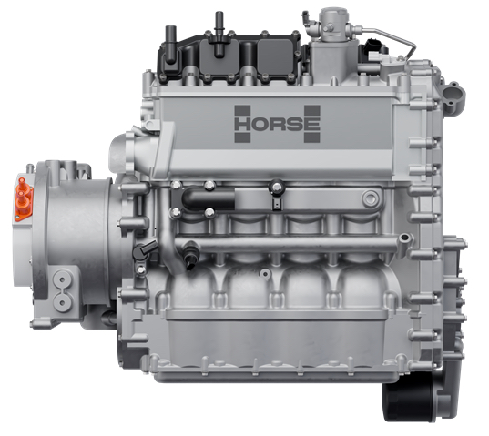 A REx/ APU egység a hajtáslánc energiamérleg-stabilizáló modulja, nem pedig hajtási egység. A Horse Powertrain – az Aurobay Technologies mérnöki kapacitásaival – erre a célra fejlesztette ki a C15 kompakt erőműegységet, amely egy multi-fuel üzemű 2,0 literes (1,5 L architektúrájú, turbóval 120 kW-ra skálázott) négyhengeres motorból, egy folyamatos 120 kW teljesítményű nagyteljesítményű generátorból, egy integrált inverterből és egy zárt hűtőrendszerből áll. Az egész modul mérete mindössze 550 × 550 × 275 mm, így a legtöbb elektromos teherjármű-platformhoz „drop-in” módon illeszthető. A C15 motor legfőbb NVH- és integrációs sajátossága a négyhengeres kialakítás, amelyet szándékosan választottak a háromhengeres generátormotorok helyett, hogy a REx működése közben se romoljon az elektromos járművekre jellemző csendesség és kifinomultság. A motor működését alacsony fordulatszám-tartományra optimalizálták: 3000 fordulat mellett érhető el a rendszer legjobb BSFC (Brake Specific Fuel Consumption)-hatékonysága és NVH-viselkedése, míg nagyon alacsony akkumulátor töltöttségiszint esetén a fordulat 4000 fordulatig emelkedhet.