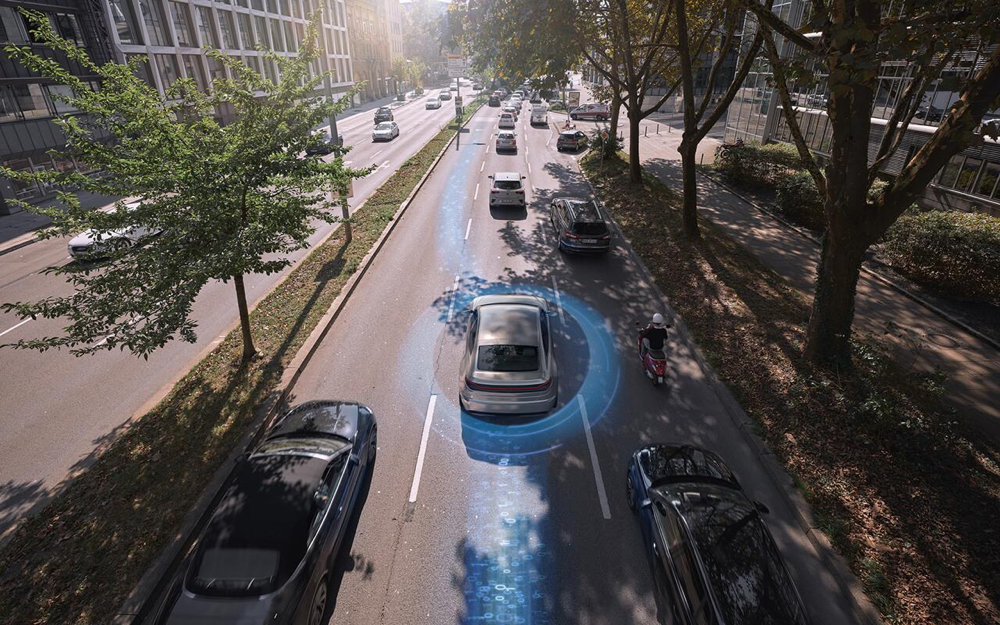 Az információcsere a környezetben lévő járművekkel és infrastruktúrával növeli az automatizált vezetési funkciók hatékonyságát.