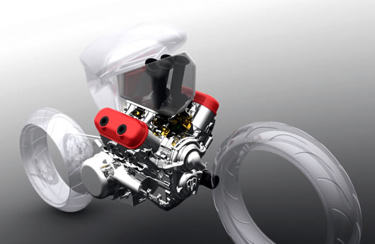 A konstrukció mérnöki értelemben is kiemelkedett: a 42°-os V-szög a két henger közelebb hozásával keskenyebb forgattyúházat eredményezett, ami kompaktabb blokkméretet és könnyebb beépíthetőséget tett lehetővé, miközben a közös forgattyús csapon osztozó hengerek kedvezőbb primer kiegyensúlyozása és a 318°/402°-os gyújtásütem-eloszlás a 45°-os elrendezés (315°/405°) lüktetőbb karakteréhez képest csökkentett rezgésszintet és egyenletesebb járást biztosított; emellett a hosszúlöketes (84 × 89 mm) konstrukció fordulatszám-tartományában a dugattyúk gyorsítási–fékezési görbéi jobban fedték egymást, mérsékelve a keresztirányú lengéseket és csavaró rezgéseket, míg a kisebb V-szög a váltó közvetlenebb, kompaktabb integrációját is lehetővé tette, szemben a Harley 45°-os elrendezésével, amely hosszabb tengelykapcsolati megoldásokat, nagyobb tengelytávot és nehezebb hajtáslánc-architektúrát eredményezett.