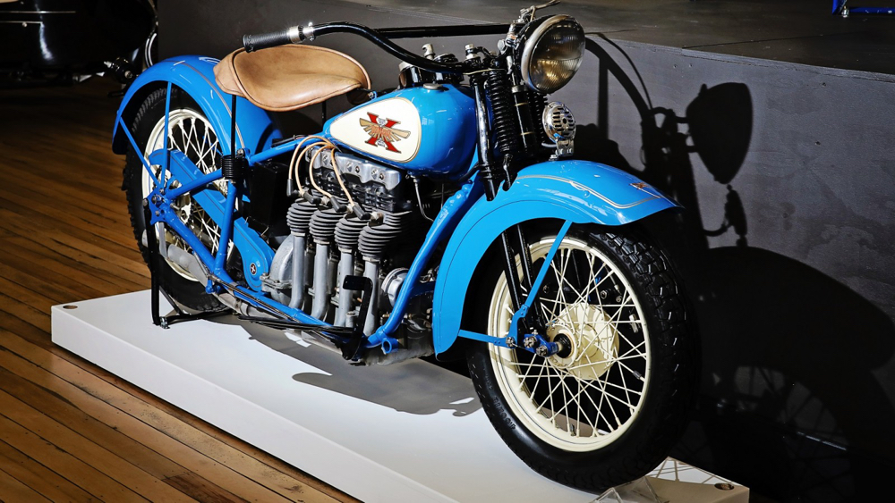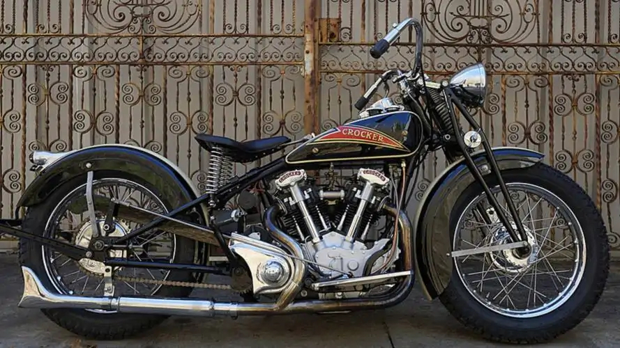 „First of all!” az amerikai motoroskultúra kialakulásával kapcsolatban mi sem volt természetesebb, hogy két keréken is hamar beköszöntött a V-elrendezés! Az Egyesült Államokban a motorkerékpárok története az 1860-as évek kísérleti gőz-„velocipédjeivel” indul (Roper-féle gőzkerékpár), majd az 1890-es évek végén jelennek meg az első sorozatban kínált benzinmotoros gépek, mint a Metz-féle Orient Motor Cycle és a Thomas Auto-Bi. 1901-ben az Indian, 1903-ban a Harley-Davidson alapítása jelzi a valódi iparági rajtot: a kerékpárból kinövő, kis lökettérfogatú egyhengeresek gyorsan két hengeres, V-elrendezésű, nyomatékos blokkokká fejlődnek. Az 1910-es években a döntött falú versenypályák (board track) és a rendvédelmi, postai felhasználás felhajtóerőt ad a motorkerékpár szegmensnek; ekkor szilárdul meg az amerikai „nagy V-twin” ízlésvilág, de ezzel párhuzamosan megszületik a „selymes” soros négyhengeres luxus-vonal is (Henderson, majd Indian Four). A húszas évek az aranykor: az Indian Scout és Chief, illetve a Harley flathead modelljei országjárásra, a Henderson KJ finom futású négyhengerese hosszú utakra csábít, a robusztus felépítés és a nagy lökettérfogat az amerikai útviszonyokhoz és sebességprofilokhoz igazodik. A harmincas évek gazdasági válsága ellenére mérnöki csúcsokat hoz: a tiszta kézművel előállított Crocker Big Twin ritka, de ikonikus teljesítményetalon, miközben a Harley és az Indian a tartósságot és a nyomatékot polírozza.