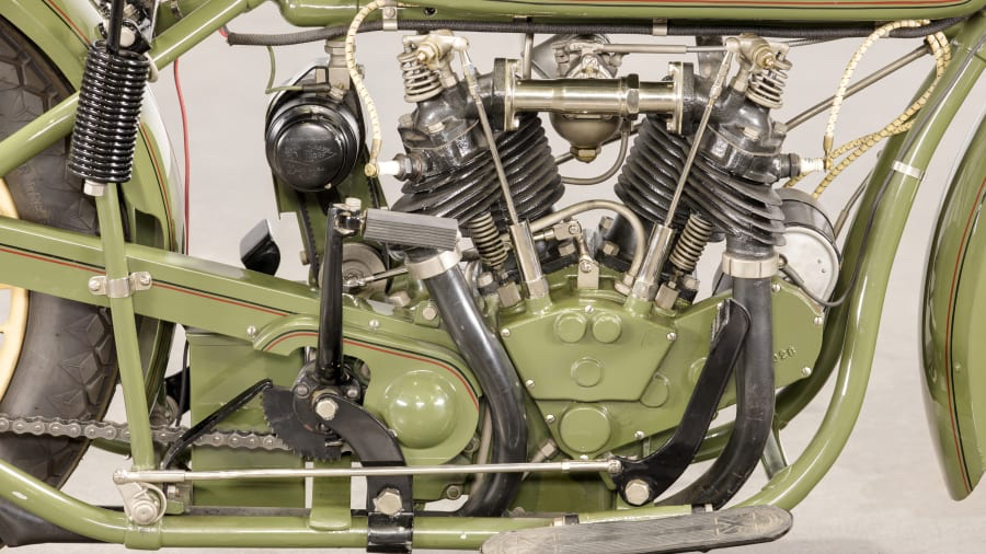 Az oldaltszelepelt (flathead) elrendezés további nagy előnye volt a gyártási és karbantartási egyszerűség, csendesebb működés, kisebb szerelési igény és robusztus szerkezet, ami katonai, posta és rendőrségi felhasználásnál komoly előnyt jelentett. A motorhoz háromfokozatú, integrált váltó és láncos primer hajtás tartozott, Schebler karburátorral, és a hűtést bordázott szelepsapkák és jól tervezett olajcsatornák segítették.
