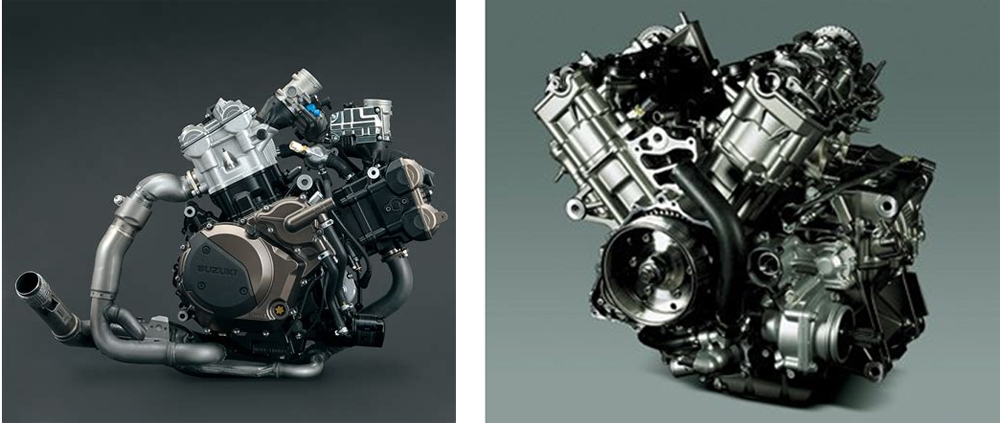 A Suzuki V-Strom sorozat (DL650, DL1000, DL1050) már a 21. század elején vitte tovább ugyanezt a gondolatot, korszerű technológiákkal. A sportos TL1000S-ből és SV650-ből származó, 90 fokos V2-es blokk természetes kiegyensúlyozottsága miatt nem igényel kiegyenlítőtengelyt, ami egyszerre csökkenti a súrlódást és növeli a megbízhatóságot. A DOHC-s, négyszelepes hengereket a Suzuki saját SCEM bevonata borítja, biztosítva a kiváló hővezetést és kopásállóságot, míg az elektronikus gázvezérlés, a csúszókuplung és a kipörgésgátló a modern emissziós és kezelhetőségi elvárásokhoz hangolják a blokkot.
