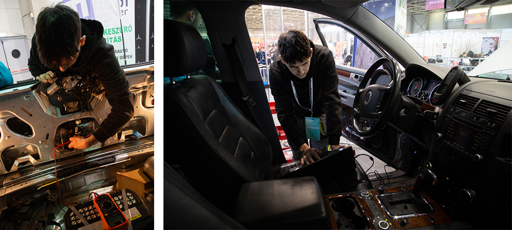 A járműelektronikai feladat minden évben mumus a diákoknak. Egy VW Touaregen kellett hibákat keresni és méréseket végezni. Csak multiméter és oszcilloszkóp volt használható a feladat elvégzéséhez. A versenyfeladatot korábbi nemzetközi tapasztalatok alapján állította össze Tánczos Bence, aki kifejezetten az autóvillamossági feladatokat szereti.
