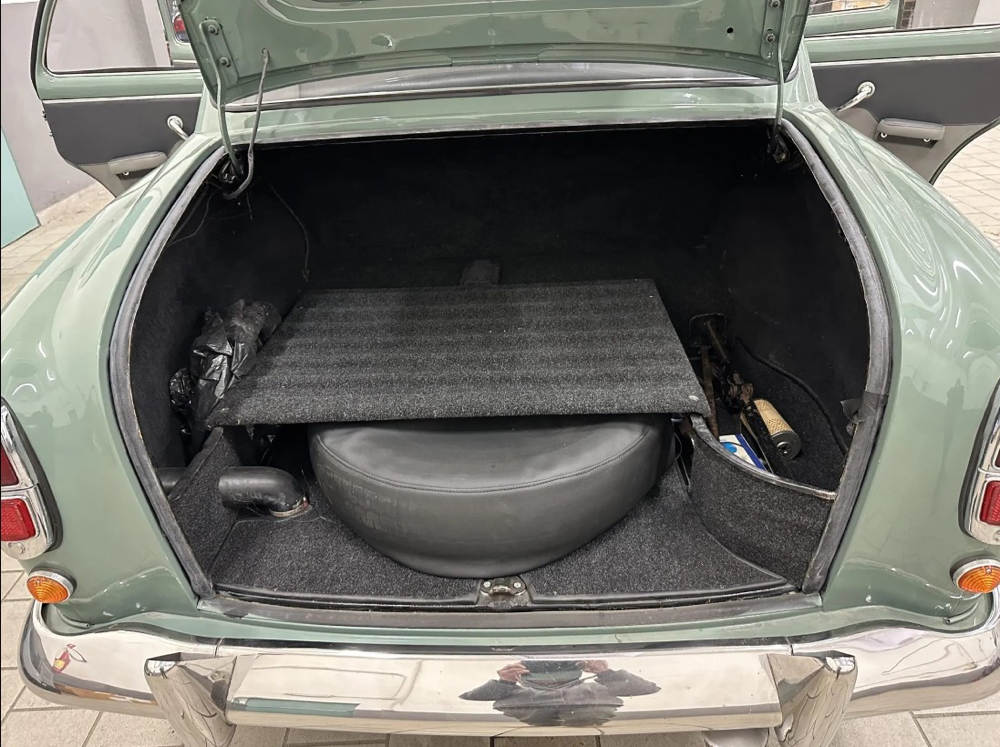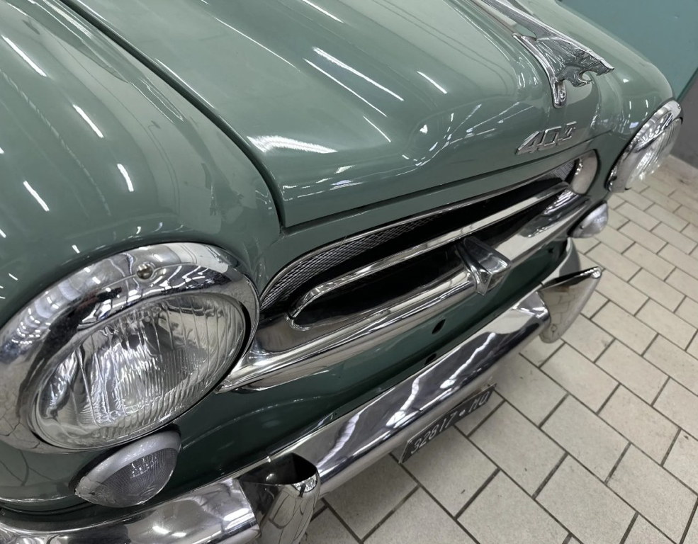 Az aukciós ház által készített és több mint kétszáz fotót tartalmazó dokumentáció elárulja, hogy maga a 403-as remek állapotban van. Az alváz és a karosszéria teljesen rozsdamentes, sőt, alapos alvázvédelmet is kapott az autó. A csomagtartót kinyitva persze mellbevágó az 1950-es évek tervezési filozófiája – akkoriban a térergonómia tudománya még gyerekcipőben járt. Igényes megoldás, hogy a pótkerék kapott külön műbőrtokot. Ám mivel a tank a padló alatt van, a pótkeréknek nincs külön mélyedése, így a csomagok elől foglalja a helyet, de a sík rakodófelület érdekében legalább kapott egy fedelet. Az értő kézzel restaurált autón egyetlen hiba fedezhető fel: a kormányoszlop krémszínű műanyagburkolata a helyén van ugyan, de repedt.
