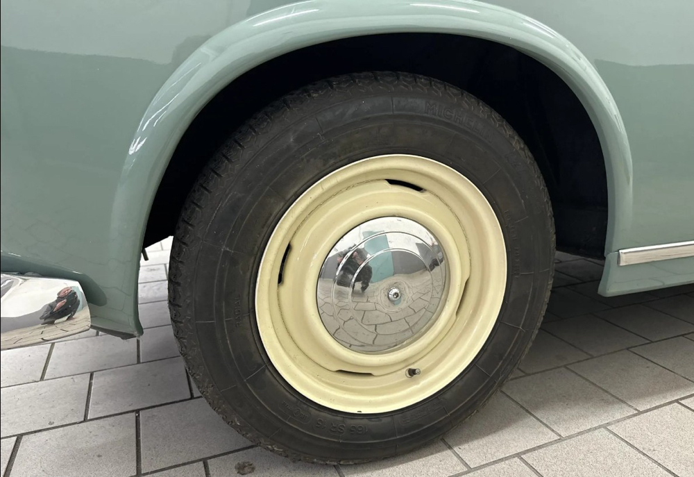 A technikai részletek is a kortárs mérnöki gondolkodást tükrözik: az 56 lóerős, 1468 köbcentis négyhengeres motor, a Solex karburátor, a négyfokozatú váltó karja a kormányoszlopon, valamint a 150 km/h-ig skálázott Jaeger műszerek és a dobfékek együttese mind a kor mérnöki színvonalát idézik. A krémszínű, 15 colos acélfelnikre szerelt Michelin XZX gumik is korhű darabok: a mintázatukat elnézve ma már inkább terepguminak neveznénk őket.